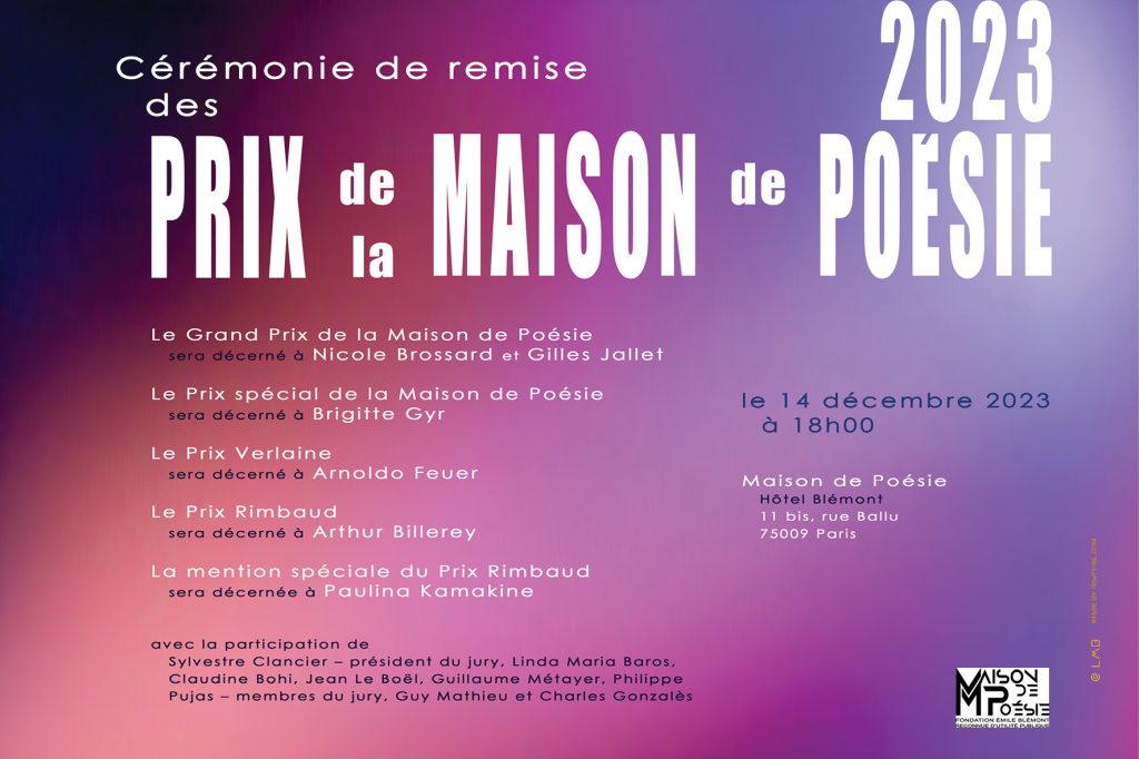 CÉRÉMONIE DE REMISE DES PRIX DE LA MAISON DE POÉSIE 2023