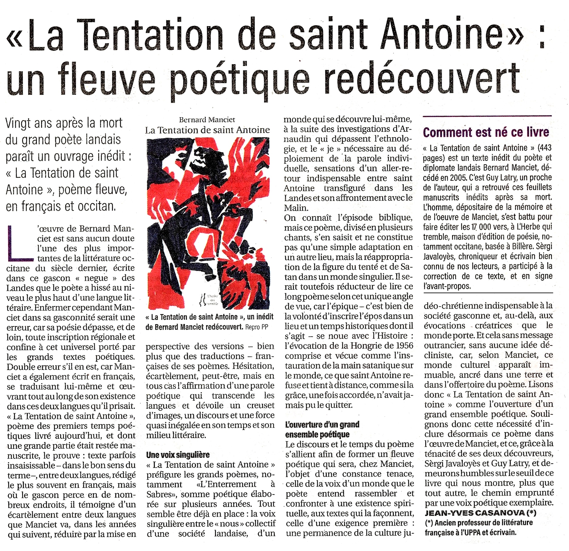 A lire l’excellent article de jean-Yves Casanova, spécialiste de la littérature occitane et écrivain, paru il y a peu dans le quotidien La République des Pyrénées