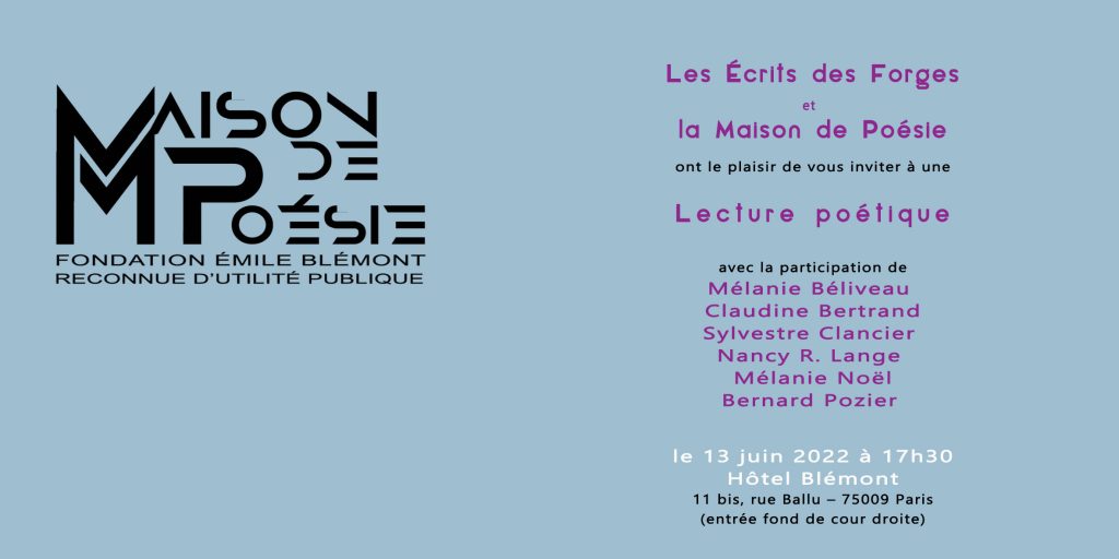 Les Écrits des Forges et la Maison de Poésie vous invitent à une lecture poétique le 13 juin 2022